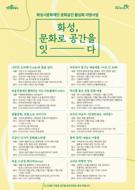 화성시문화재단, 문화공간 활성화 지원사업 ‘문화로 공간을 잇-다’ 진행