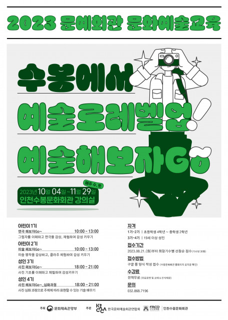 인천수봉문화회관, 문화예술교육 프로그램 ‘수봉에서 예술로 레벨업! 예술해보자 go’ 참가자 모집