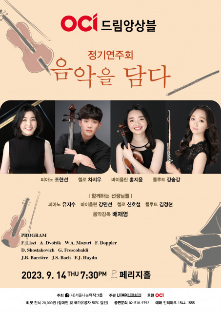 OCI 드림앙상블 정기연주회 ‘음악을 담다’ 9월 14일 페리지홀 개최