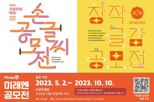 미래엔, 제8회 초등학생 톡톡 손글씨 공모전 및 제7회 미래엔 창작 글감 공모전 개최
