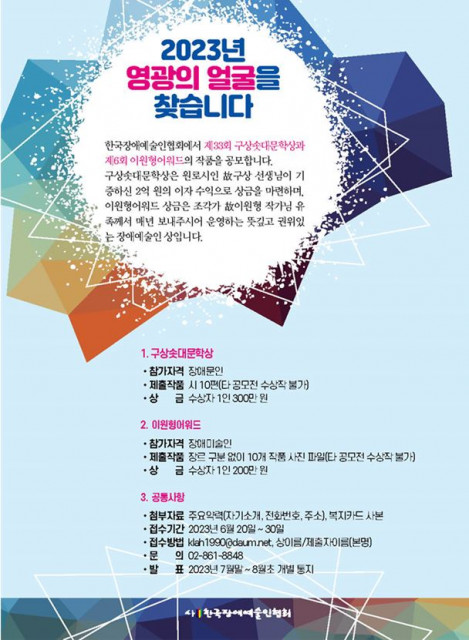 한국장애예술인협회, 제33회 구상솟대문학상·제6회 이원형어워드 공모 진행