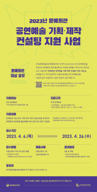 코카카, 신규 사업 ‘문예회관 공연예술 기획·제작 컨설팅’ 추진… 문예회관 대상 26일까지 공모