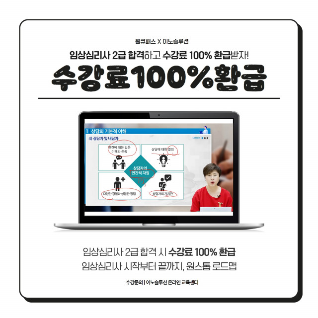 다락원, 원큐패스 임상심리사 2급 환급 과정 수강 시 수강료 100% 환급