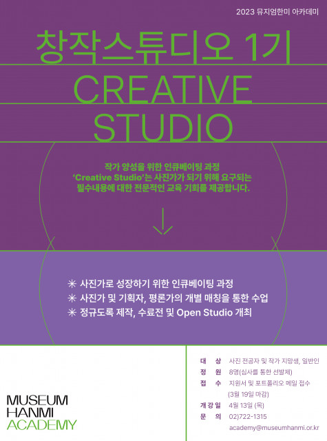 뮤지엄한미 아카데미, 사진가 인큐베이팅 과정 ‘창작스튜디오’ 1기 모집