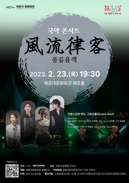 해운대문화회관, 2월 문화가 있는 날 국악콘서트 ‘풍류율객’ 개최