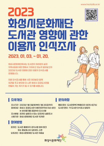화성시문화재단 도서관 ‘2023년도 이용자 인식조사’ 실시