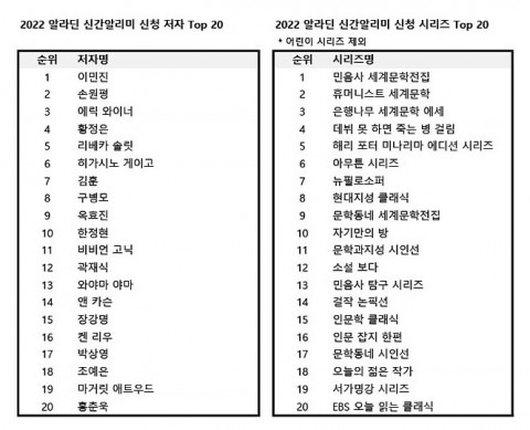 이민진·민음사세계문학전집, 알라딘 신간 알리미 최다 신청 1위