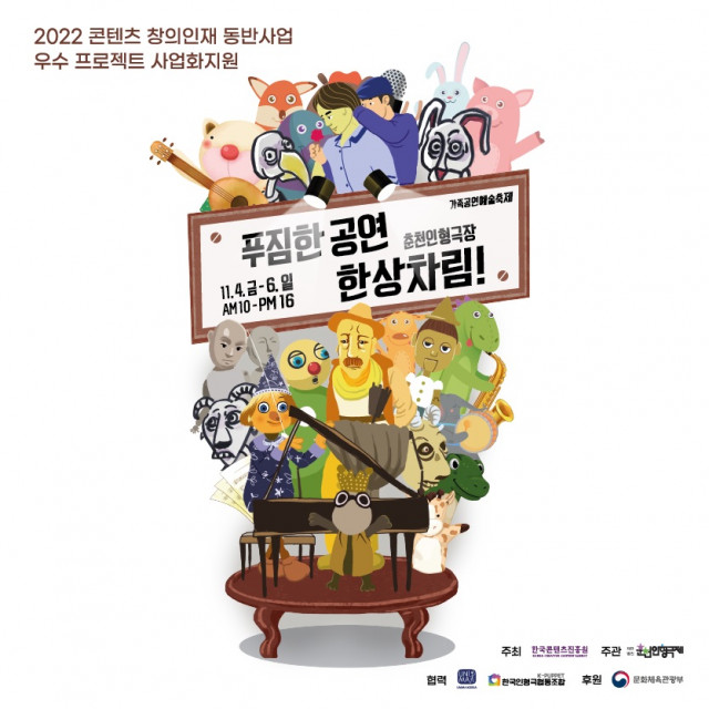 재단법인 춘천인형극제(이사장 조현산)가 유니마코리아, 한국인형극협동조합과 함께 한국콘텐츠진흥원의 콘텐츠 창의인재동반사업의 수료생을 대상으로 우수 프로젝트를 지원, 인형극 시장 진출 활성화와 성공사례 창출에 나섰다. 춘천인형극제는 제1회 가족공연예술출제 ‘푸짐한 공연, 한 상 차림!’ 개최를 통해 △현장 발표 및 전문가 피드백 △국내·외 해외 공연 전문 마케터를 통한 판로 개척 △맞춤형 컨설팅 지원 등에 나서며 창의인재의 지속적 창작 활동 유지 및 창작 프로젝트의 질적 향상을 지원한다. 또한 이 축제를 통해 우수 프로젝트 참...