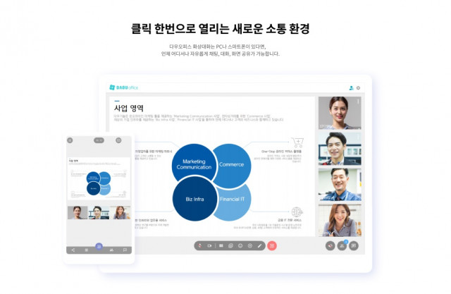 다우기술(대표이사 김윤덕)의 업무 관리 플랫폼 ‘다우오피스’가 25일 ‘화상대화’ 서비스를 출시한다고 밝혔다. 화상대화는 신종 코로나바이러스 감염증(코로나19) 이후 기업 내 재택근무 시행 확산 및 장기화에 따라 화상회의 서비스 수요가 높아지면서 출시된 다우오피스의 새 서비스다. 다우오피스는 앞서 화상회의 솔루션 줌(Zoom)과 연동해 사용할 수 있는 기능을 제공하고 있었다. 이번 새로 출시한 화상대화 서비스는 따로 앱을 설치하거나, 로그인할 없이 다우오피스 메신저 및 모바일에서 클릭 한 번으로 사용할 수 있는 게 특징이...