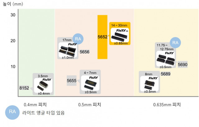 교세라주식회사(사장: 다니모토 히데오)가 16Gbps 수준의 고속전송과 X, Y 방향으로 ±0.85mm 가동(F/P※1=170%)하는 구조를 실현한 0.5mm 피치 고속전송 대응 플로팅 기판대기판(Board to Board) 커넥터 ‘5652 시리즈’를 제품화하여 1월 21일(목)부터 순차적으로 샘플 출하를 시작했습니다. 그리고 당사의 고속 전송 대응 플로팅 기판대기판 커넥터의 제품군의 브랜드명을 ‘FloXY(플록시)’로 명명했습니다. 향후에도 플로팅 커넥터의 라인업을 잇달아 확충해 나갈 예정입니다. ※1 F/P F= Fl...