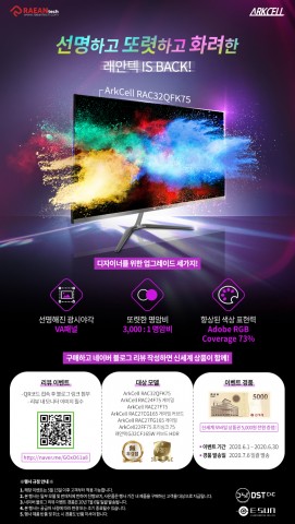 게이밍 모니터의 명가 래안텍(대표신은정)이 래안텍 아크셀(Arkcell) 게이밍 모니터 시리즈 구매자 대상으로 네이버 블로그 리뷰 이벤트를 진행한다. 래안텍 아크셀 게이밍 모니터 공식 수입사 이선디지탈과 디에스티씨앤씨(DSTC&C)는 6월 한 달 동안 이벤트 대상 래안텍 모니터를 구매한 고객 중 네이버 블로그 리뷰 이벤트에 참여한 전원에게 신세계 모바일 상품권 5000원권을 증정한다. 해당 이벤트는 5월 15일 이후 이벤트 대상 모니터를 구매한 고객에게도 동일하게 적용된다. 이벤트에 참여하기 위해서는 먼저 이벤트 대상 모니...