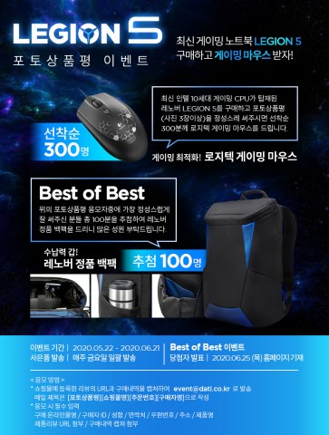 반석전자가 레노버 신규 라인업으로 추가된 AMD 게이밍 노트북 Legion 5를 국내에 처음 선보인다. 반석전자는 레노버 AMD 게이밍 노트북 Legion 5의 공식 수입 총판사다. 반석전자는 5월 27일부터 6월 14일까지 AMD 게이밍 노트북 Legion 5의 예약 판매를 진행한다고 29일 밝혔다. 노트북은 6월 15일부터 순차 발송될 예정이다. 반석전자는 노트북 구매 후 포토 리뷰를 작성한 고객 300명에게 로지텍 게이밍 마우스를 증정한다. 또 포토 리뷰 중 베스트 리뷰를 추첨해 최대 100명에게 LENOVO 정품 백...