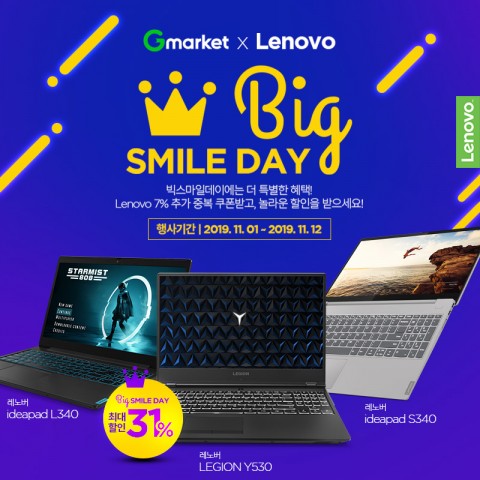 한국 레노버의 공식 유통사인 반석전자(대표 진형건)는 옥션, 지마켓의 최대 쇼핑 축제인 ‘빅스마일데이’를 통해 레노버 인기 노트북 할인 이벤트를 11월 1일부터 진행한다. 스마일클럽 회원은 최대 30만원까지 할인되는 20% 쿠폰과 최대 11만원 할인 가능한 11% 중복 쿠폰으로 최대 31% 할인 혜택을 받을 수 있다. 일반 회원은 최대 10만원까지 할인되는 15% 쿠폰과 최대 7만원 할인 가능한 7% 중복 쿠폰을 통해 최대 22% 할인 혜택으로 레노버 노트북 인기 모델을 부담 없는 가격으로 구입할 수 있다. 이벤트 대표 모델...