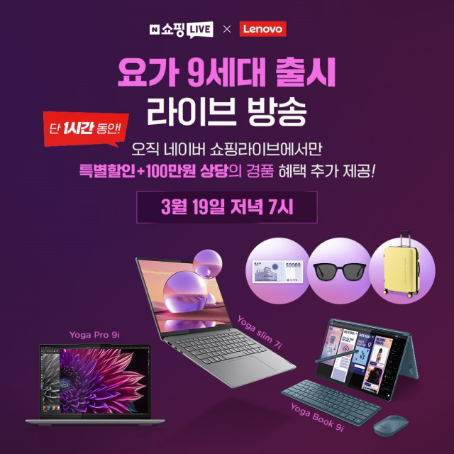 한국레노버 ‘요가 9세대’ 출시 기념 신제품 3종 네이버 쇼핑 라이브 19일 진행