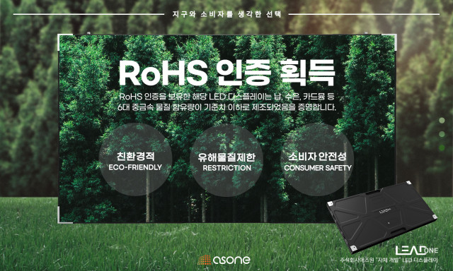 애즈원, 자체 개발 친환경 LED 디스플레이 ‘LEADONE’ RoHS 인증 획득