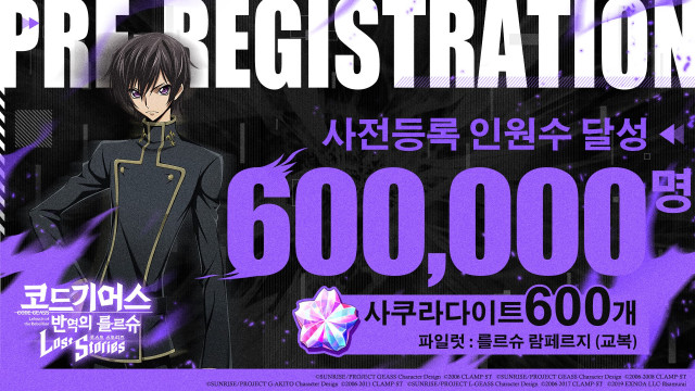 모바일 게임 ‘코드기어스 반역의 를르슈 로스트 스토리즈’ 사전 예약자 60만명 돌파, 5월 18일 출시 확정