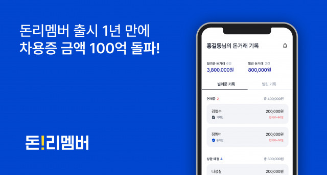 온라인 차용증 서비스 돈리멤버, 출시 1년 만에 차용증 금액 100억원 돌파