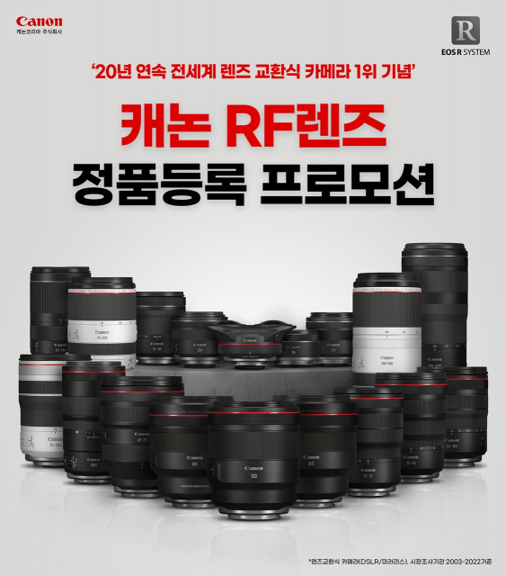 캐논코리아, 20년 연속 1위 기념 RF렌즈 23종 정품 등록 프로모션 진행