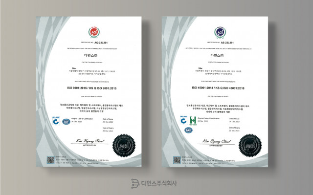 다인스 AI 영상분석 시스템, 국제표준 ISO 9001·ISO 45001 인증 획득