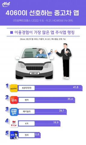 임팩트피플스, 4060 신중년 이용 경험 가장 많은 중고차 앱 1위는 ‘KB차차차’