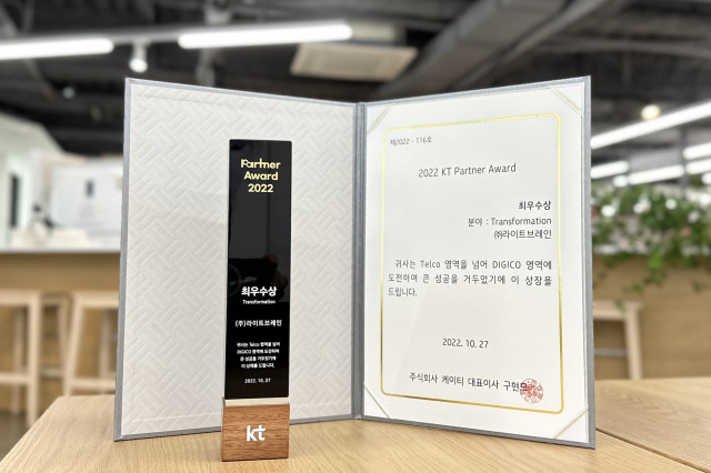 UX 디자인 전문 기업 라이트브레인 황기석 대표가 27일 열린 ‘제9회 KT Partner’s Day 2022’ 행사에서 ‘Partners Award’ Transformation 부문 최우수상을 수상했다. ‘KT Partner’s Day’는 한 해 사업성과 창출에 기여한 파트너사에 대한 격려와 새로운 미래를 KT와 파트너사가 함께 하자는 의지를 다지는 행사이며 ‘Partners Award’는 KT가 한 해 동안 상생 협력을 위해 애쓰고 탁월한 성과를 낸 협력사를 선정해 수여한다. 라이트브레인이 선정된 ‘Transformati...