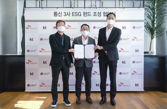 SK텔레콤(대표 유영상)과 KT(대표 구현모), LG 유플러스(대표 황현식)는 ESG 경영 확산을 목표로 하는 ‘ESG 펀드’ 조성에 함께 나선다고 29일 밝혔다. 3사는 SKT 유영상 대표, LG유플러스 황현식 대표, KT 박종욱 사장 등 주요 임원들이 참석한 가운데 성수동 헤이그라운드에서 ‘통신3사 ESG 펀드 조성 협약식’을 갖고 ESG 분야 우수 스타트업 지원에 힘을 모을 것을 약속했다. ESG 펀드 조성을 위해 한 분야의 대표 기업들이 힘을 모은 것은 이번이 국내 최초 사례로, 3사는 이번 공동펀드가 다른 산업 영...