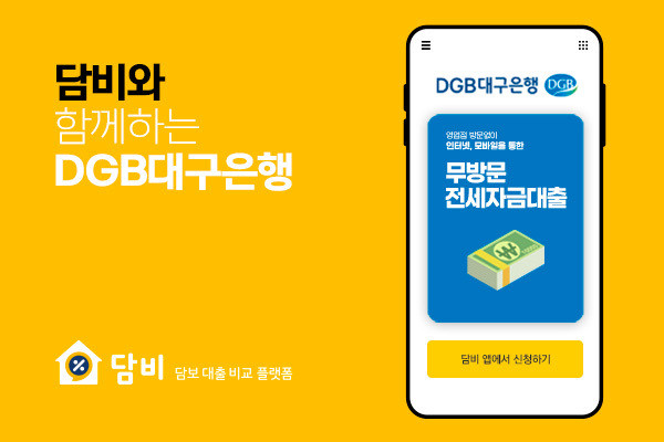 온라인 담보대출 비교 플랫폼 ‘담비’를 운영하는 베스트핀(대표 주은영)은 담비가 DGB대구은행의 플랫폼인 IM뱅크와 연동됐다고 18일 밝혔다. 이번 협약을 통해 담비 플랫폼에서도 DGB대구은행의 ‘무방문 전세자금대출’ 상품을 만나볼 수 있게 됐다. DGB대구은행의 무방문 전세자금대출은 비대면 전세자금 대출로 영업점 방문 없이 본인 명의 휴대폰만 있으면 대출을 신청할 수 있다. 아파트에 전세 입주 시 전세자금이 필요한 개인 고객이 대상이며, 최대 5억원 한도, 임차 보증금의 80% 이내로 대출이 가능하다. 특히 DGB대구은...