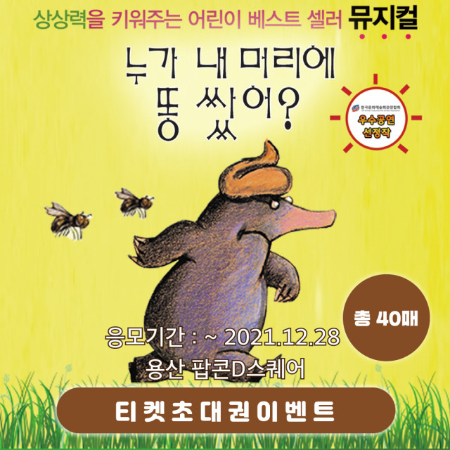 키드파인드는 연말연시를 맞아 육아 부모님과 자녀를 위한 다양한 이벤트를 진행한다고 밝혔다. 현재는 앱 회원들을 대상으로 용산 아이파크몰 팝콘D스퀘어에서 내년 1월 4일부터 공연 예정인 뮤지컬 ‘누가 내 머리에 똥 쌌어?’의 무료 초대권을 응모와 추첨을 통해 제공하는 이벤트를 진행 중이다. 이어 ‘짱구 페스티벌: 짱구야 캠핑가자!’ 체험전과 뮤지컬 헬로카봇 시즌6 ‘흔들흔들 댄스파티’와 ‘핑크퐁과 아기상어의 월드투어쇼’에 앱 회원을 무료로 초대하는 이벤트도 계획하고 있다. 키드파인드는 부모님들과 자녀들이 함께 가 볼 만한 나...