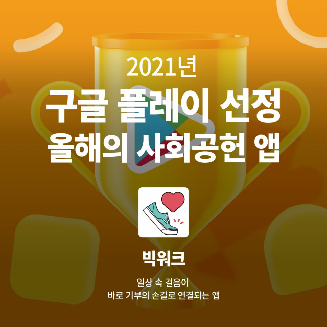 사회 혁신 컴퍼니 빌더 뉴블랙(대표 김정헌)의 자회사 빅워크가 Google Play 올해의 사회공헌 앱으로 선정됐다. 사회공헌 분야는 올해 신설됐으며, 빅워크가 첫 수상의 영예를 안았다. 2012년 4월 설립한 1세대 소셜벤처 빅워크는 걸으면서 기부하는 플랫폼을 통해 누구나 쉽게 참여할 수 있는 사회공헌 서비스를 제공한다. 기부는 이용자의 걸음 수에 비례해 기업이 비영리 단체에 기부액을 전달하는 방식으로 이뤄진다. 빅워크는 국내 기업의 ESG 경영 강화 전략에 따라 가파르게 성장하고 있다. 빅워크는 비대면 문화로 제약이 생긴...