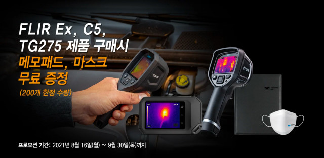 텔레다인 플리어(Teledyne FLIR, 한국지사장 이해동)가 C5, Ex 시리즈 등 다수 제품에 대해 사은품 증정 이벤트를 진행한다. 건물의 에너지 손실, 구조적 결함부터 전기/기계의 고온 조사에 특화된 컴팩트형 열화상 카메라 FLIR C5, Ex-시리즈 및 차량진단용 열화상 카메라 TG275를 구매하면 메모패드와 마스크를 무료 증정하는 이벤트를 9월 30일까지 진행한다. 이벤트에 포함된 FLIR C5 열화상 카메라는 포켓사이즈의 휴대형 열화상 카메라로, 건물의 에너지 손실, 구조적인 결함, 배관 및 배수 문제 등 많은 ...