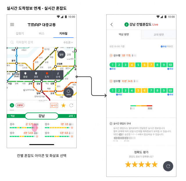 SK텔레콤(대표이사 박정호)은 서울교통공사(사장 김상범), 티맵모빌리티(대표 이종호)와 함께 서울지하철을 이용하는 시민의 편의를 높이기 위한 ‘실시간 지하철 칸별 혼잡도 안내 서비스’를 시작했다고 18일 밝혔다. 서울교통공사는 서울 1~8호선, 9호선 일부 노선 등 293개 역을 운영 중으로, 서울지하철은 하루 평균 약 545만 명이 이용하는 대한민국의 대표 대중교통 수단이다. 지하철 칸별 실시간 혼잡도는 서울교통공사의 실시간 열차 위치, SK텔레콤의 T-WiFi 정보, 티맵 모빌리티의 역정보 등 실시간 데이터를 종합해 티맵...