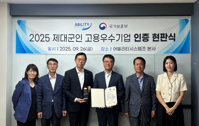 어빌리티시스템즈, 제대군인지원센터 우수기업 선정… 현판식 개최